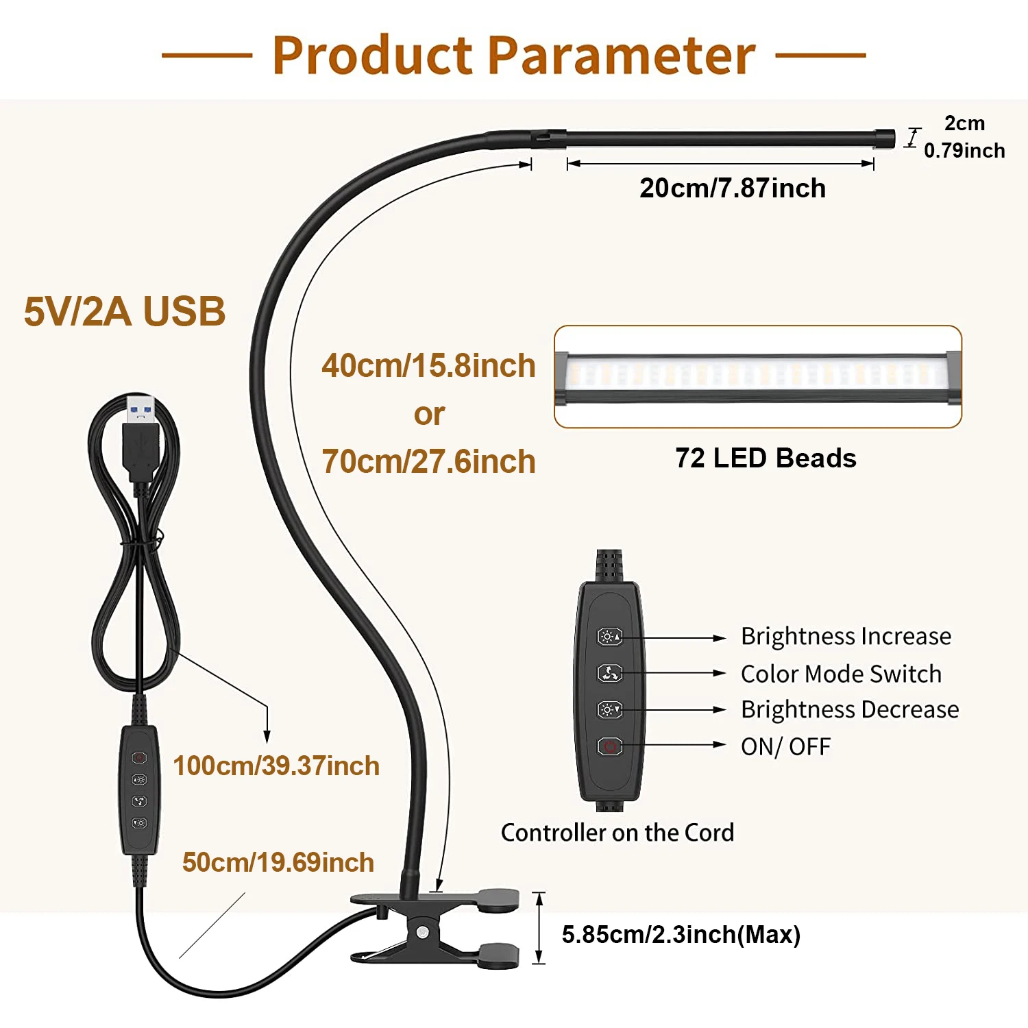 This modern clamp-on LED lamp is built for every kind of desk life — from late-night study sessions to craft tables and home offices. The long LED bar provides soft, even lighting without glare, while the flexible gooseneck lets you position the beam exactly where you need it.